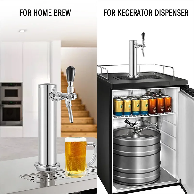 Beer Tower, Single Faucet Beer Kegerator Dispenser, 3-Inch Column Homebrew Draft Beer Dispensing, with Complete Installation Kit