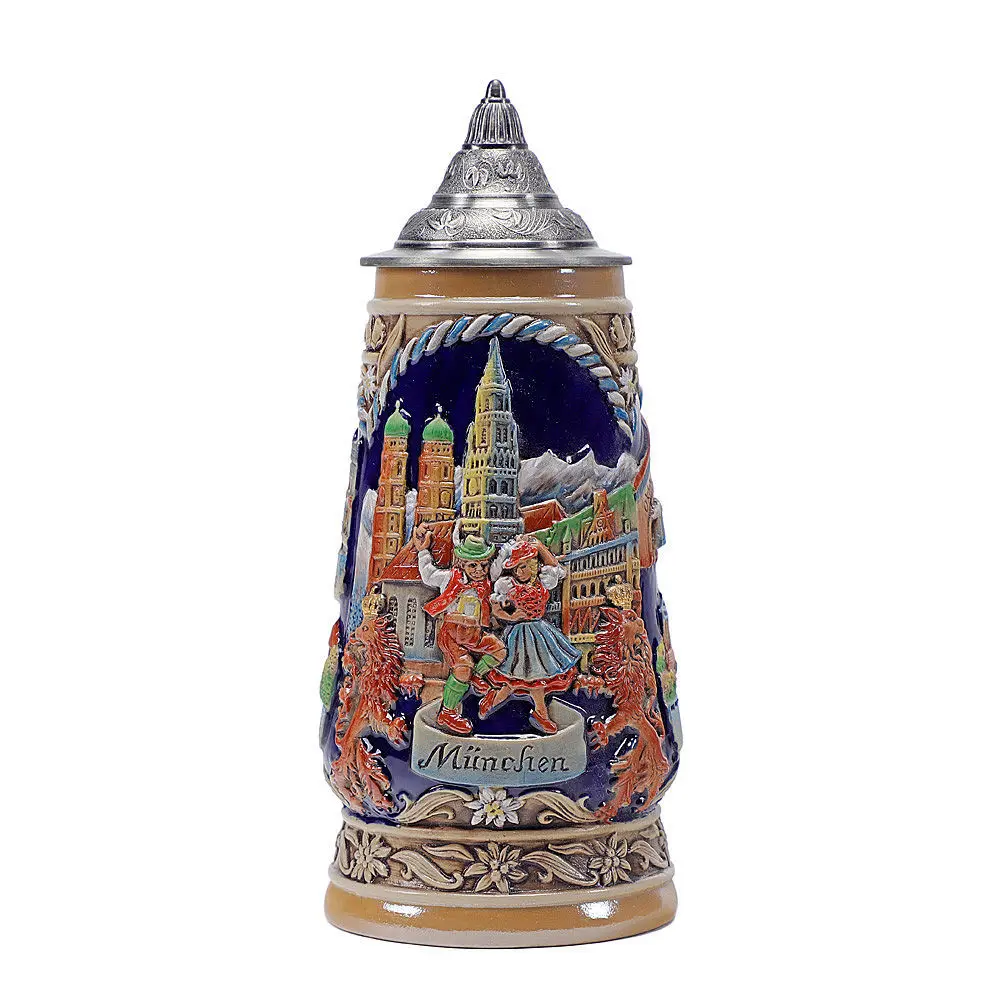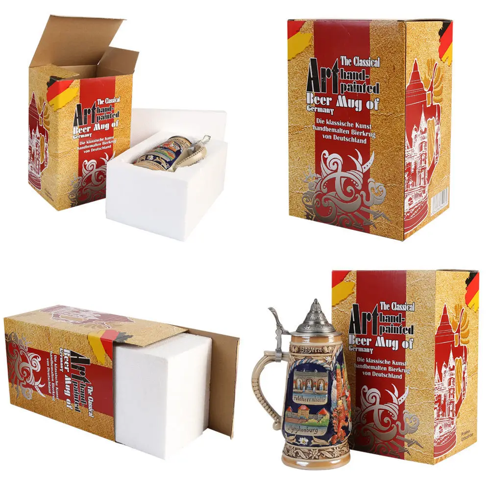 German Beer Stein Mug Large Capacity Retro Ceramic Beer Mugs Handmade Cup Germany Tankard Glass Mug 600ml Best Fathers Mens Gift