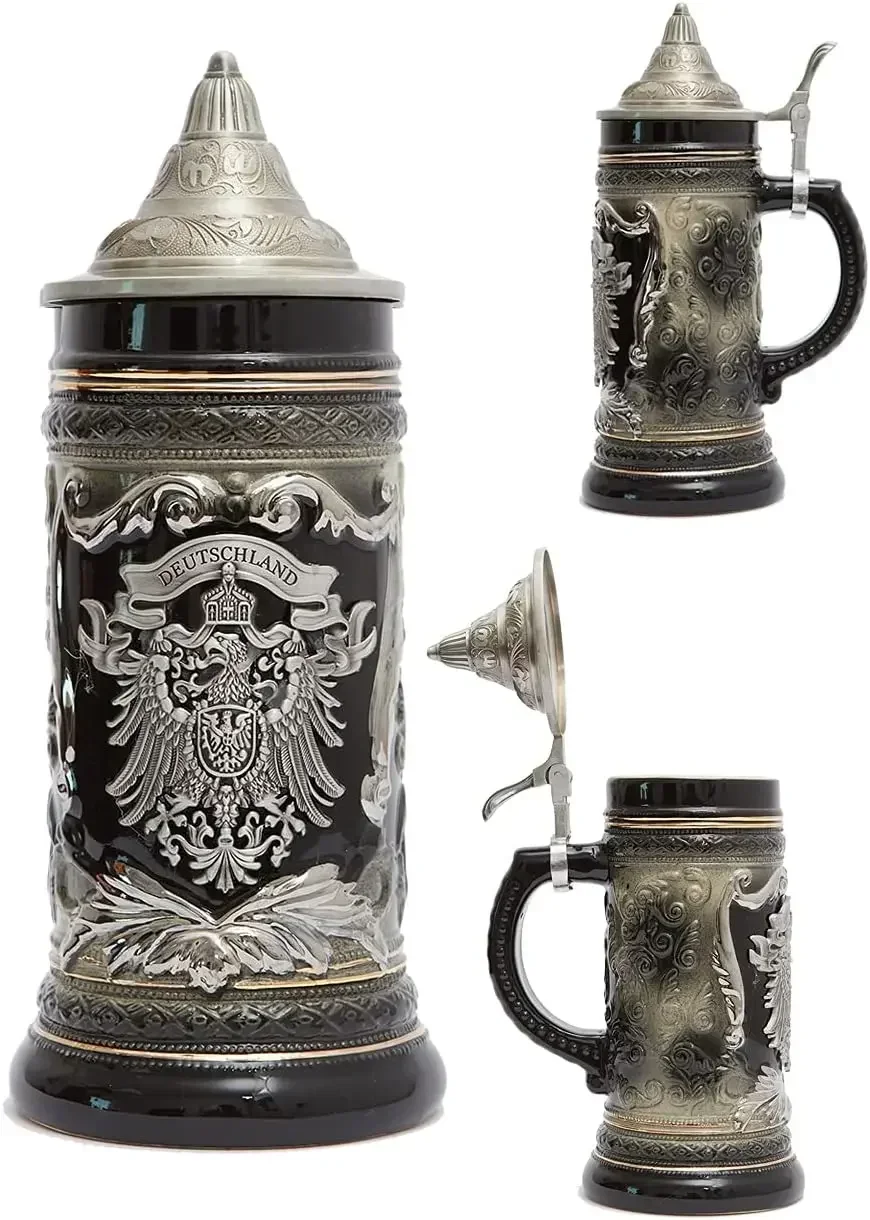 THE DESIGN– This German-Themed ceramic beer stein features a detailed engraved Germany Coats of Arms and Wheat Ears relief . It is not just real beer mug but can be used as a decoration.